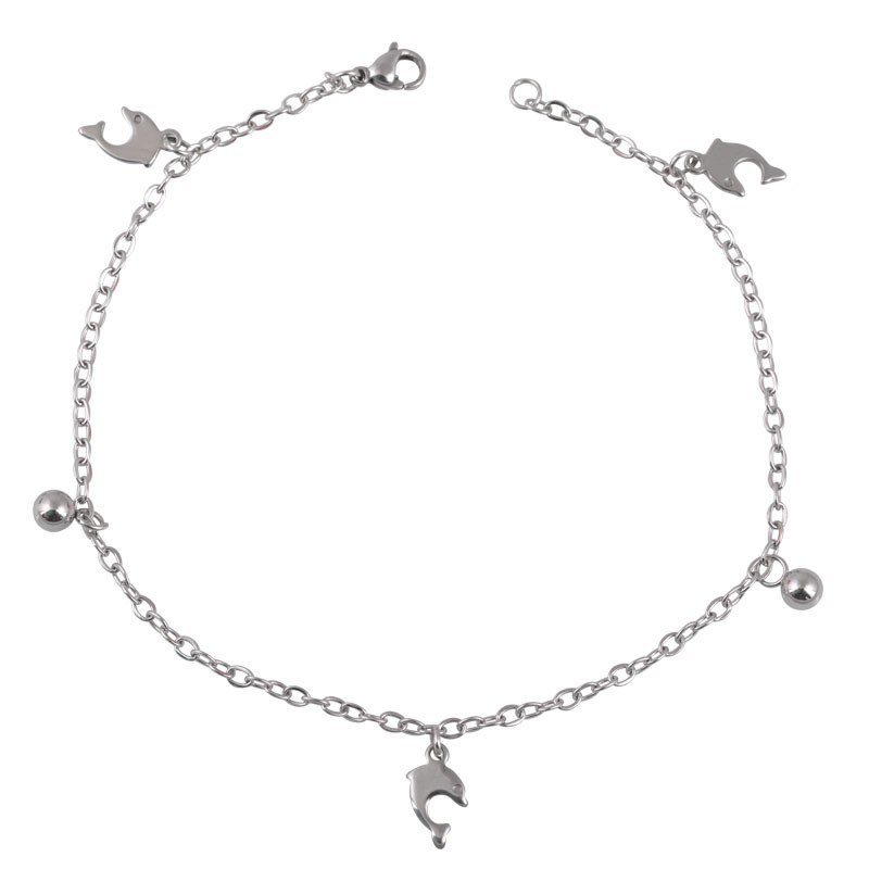 Βραχιόλι ποδιού με δελφίνια από ανοξείδωτο ατσάλι