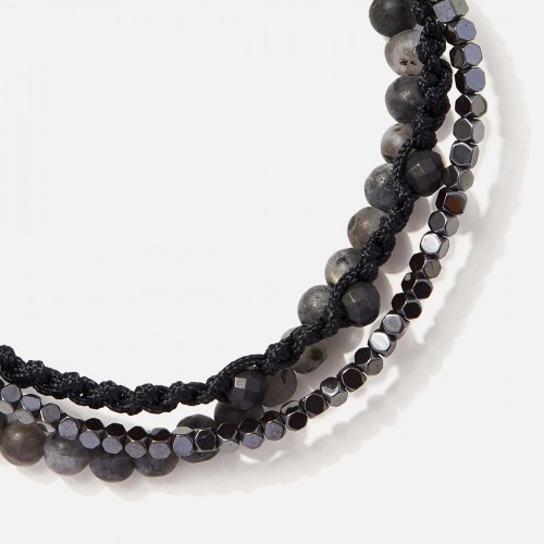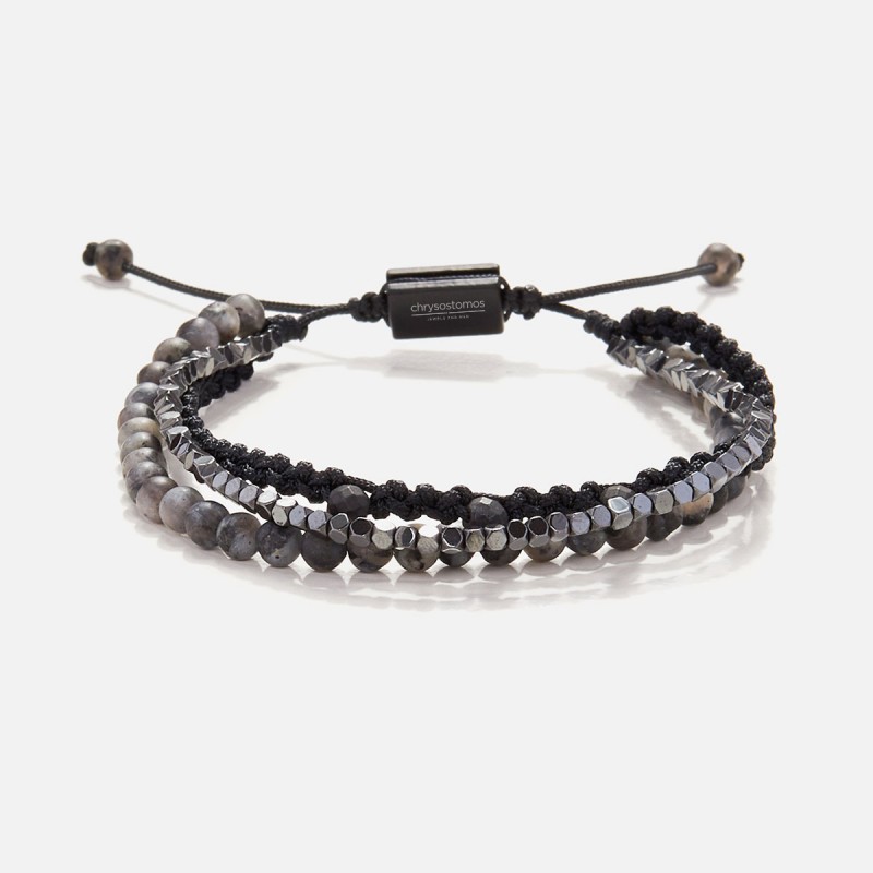 Πολύσειρο μακραμέ βραχιόλι με πέτρες αιματίτη και λαρβικίτη