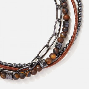Πολύσειρο μακραμέ βραχιόλι με πέτρες αιματίτη και μάτι της τίγρης