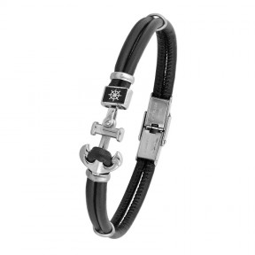 Βραχιόλι με άγκυρα από ανοξείδωτο ατσάλι και δέρμα