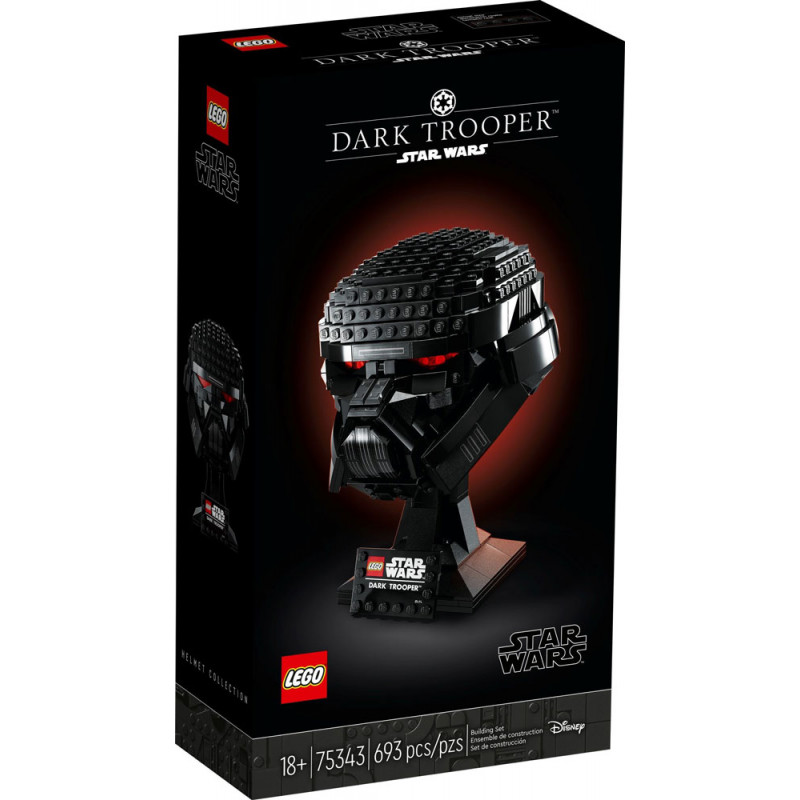 LEGO Star Wars Dark Trooper Helmet (75343).Δείξε την αφοσίωσή σου με αυτό το σετ LEGO® Star Wars™ Dark Trooper Helmet. Κάνε ένα διάλειμμα και συγκεντρώσου για να αποτυπώσεις το περίγραμμα του κράνους με το στυλ των LEGO. Χρησιμοποίησε έναν συνδυασμό από διαφανή κόκκινα LEGO στοιχεία και λευκά τουβλάκια για να αναπαραστήσεις τα λαμπερά κόκκινα μάτια ενός Σκοτεινού Στρατιώτη. Η ελαφριά προς τα εμπρός κλίση του κράνους πάνω στη βάση του ολοκληρώνει την εμφάνιση ενός πραγματικά απειλητικού κομματιού.