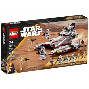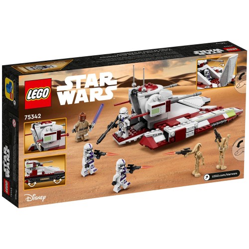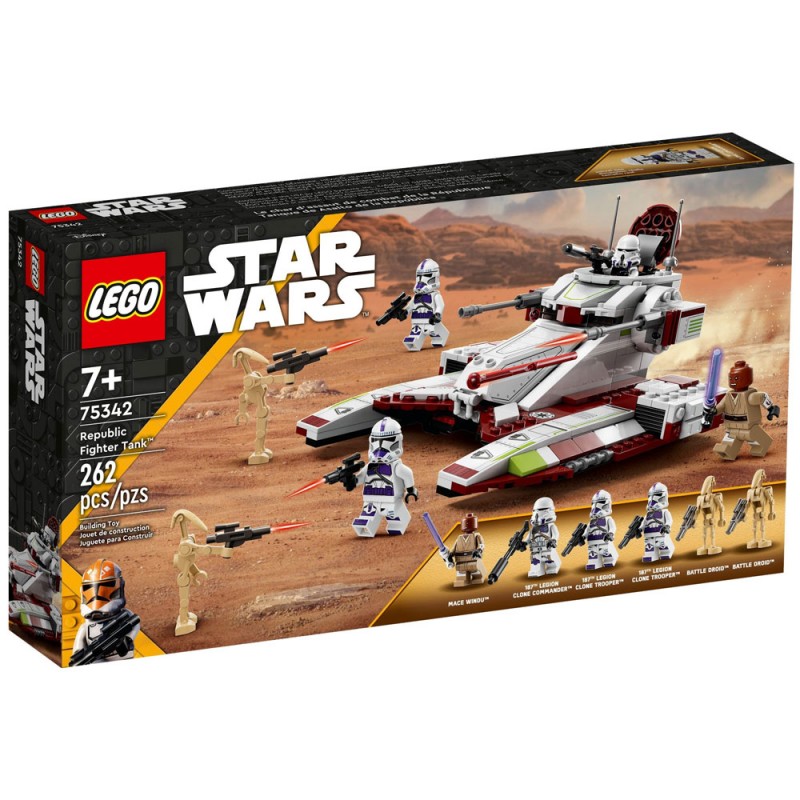LEGO Star Wars Republic Fighter Tank (75342). Συνεργάσου με τον Mace Windu και τους επίλεκτους στρατιώτες της 187ης Λεγεώνας για να πολεμήσετε τα Battle Droids. Αναλάβετε δράση με το φοβερό Republic Fighter Tank. Κατευθύνετε την επίθεση από το παρατηρητήριο με τον Διοικητή Κλώνων και πυροβολήστε με τα πυροβόλα. Χρησιμοποιήστε τη Δύναμη για να βοηθήσετε τον Mace Windu να χτυπήσει τα Battle Droids με το μωβ φωτόσπαθο του και η νίκη θα είναι δική σας!