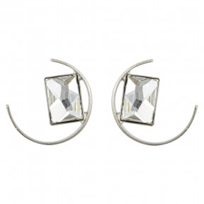 Χειροποίητα σκουλαρίκια με μισοφέγγαρο από μπρούτζο με λευκό κρύσταλλο